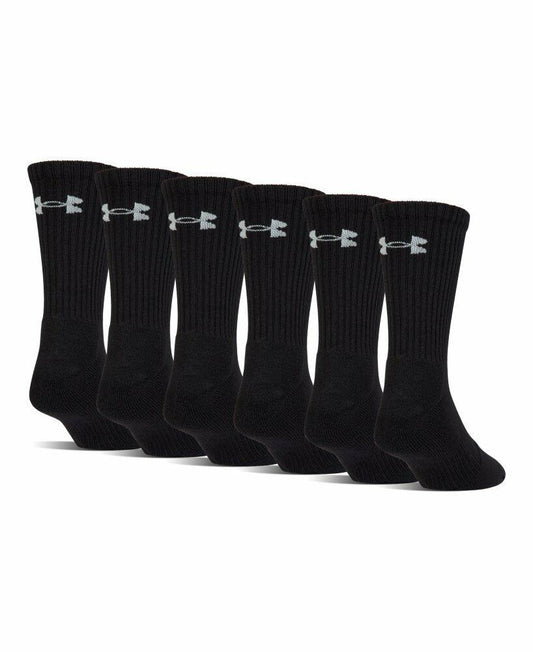 Under Armour Adult Charged Cotton Crew Socks, Multipairs, Black/Gray (6-Pairs), Large