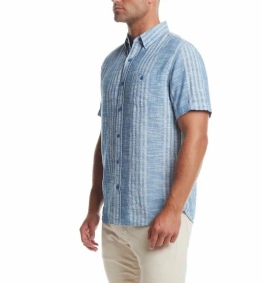 Weatherproof Vintage Men's Short Sleeve Linen Cotton Blend Woven Button Down Shirt (US, Alpha, Small, Regular, Regular, Blue)