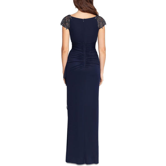 Xscape Womens Embellished Maxi Evening Dress Navy 16