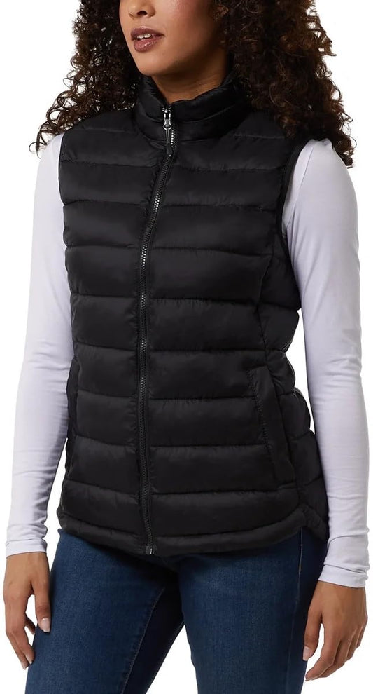 32 Degrees Women's' Vest Leightweight Zipper Hand Pocket (Black, L), Large