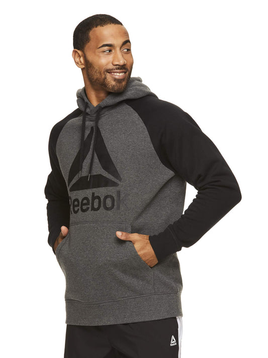 Reebok Men's Performance Pullover Hoodie Sweatshirt - Graphic Hooded Activewear Sweater with Front Pocket - Charcoal Heather Mesh Camo Po, Medium