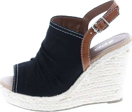 Soda Women's Jafari Open Toe Ruched Canvas Espadrille Platform Wedge (Black, us_footwear_size_system, adult, women, numeric, medium, numeric_7_point_5)
