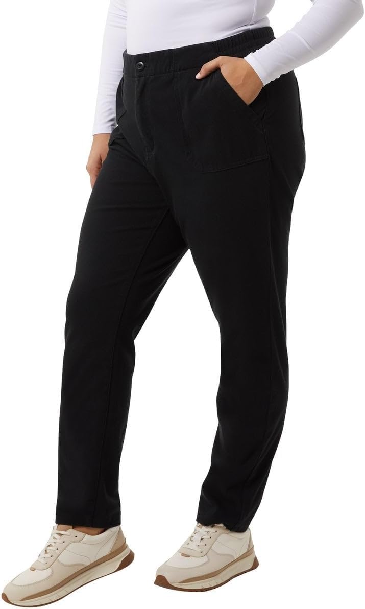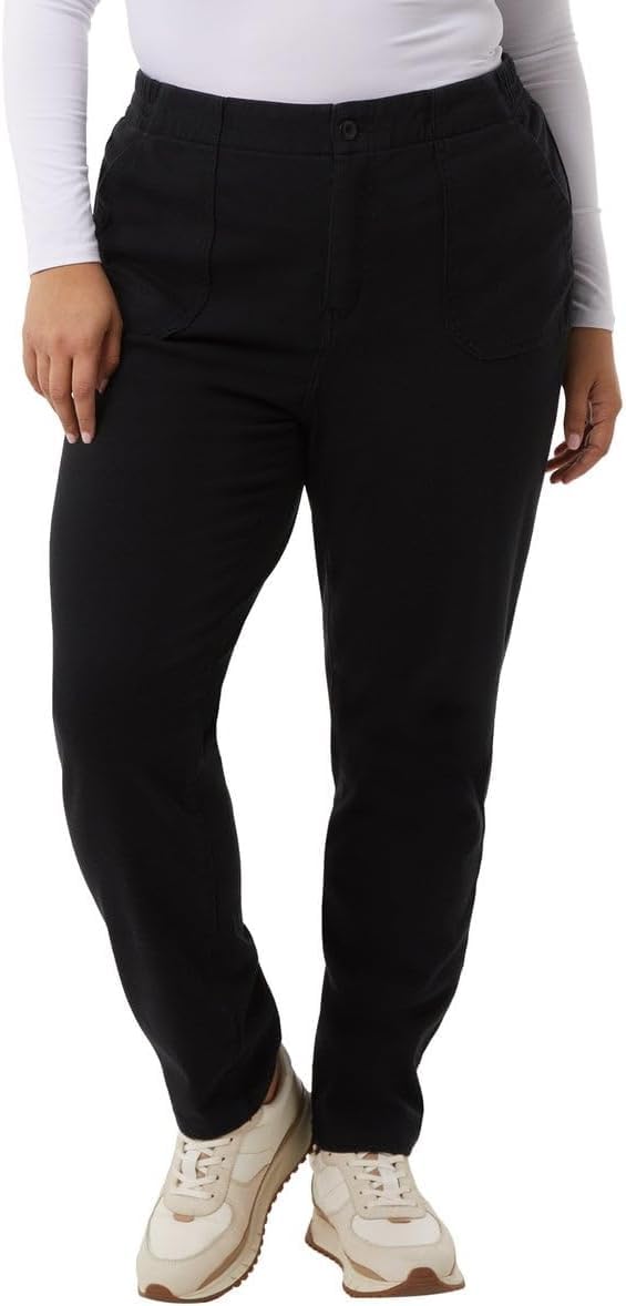 - DESIGN FEATURES: These comfort twill fabric pants feel better than jeans or a pencil skirt. Handy side pockets. Like your favorite sweatpants and joggers, these rest on your natural waist. Stretchy waist gives you room to breathe all day long.
