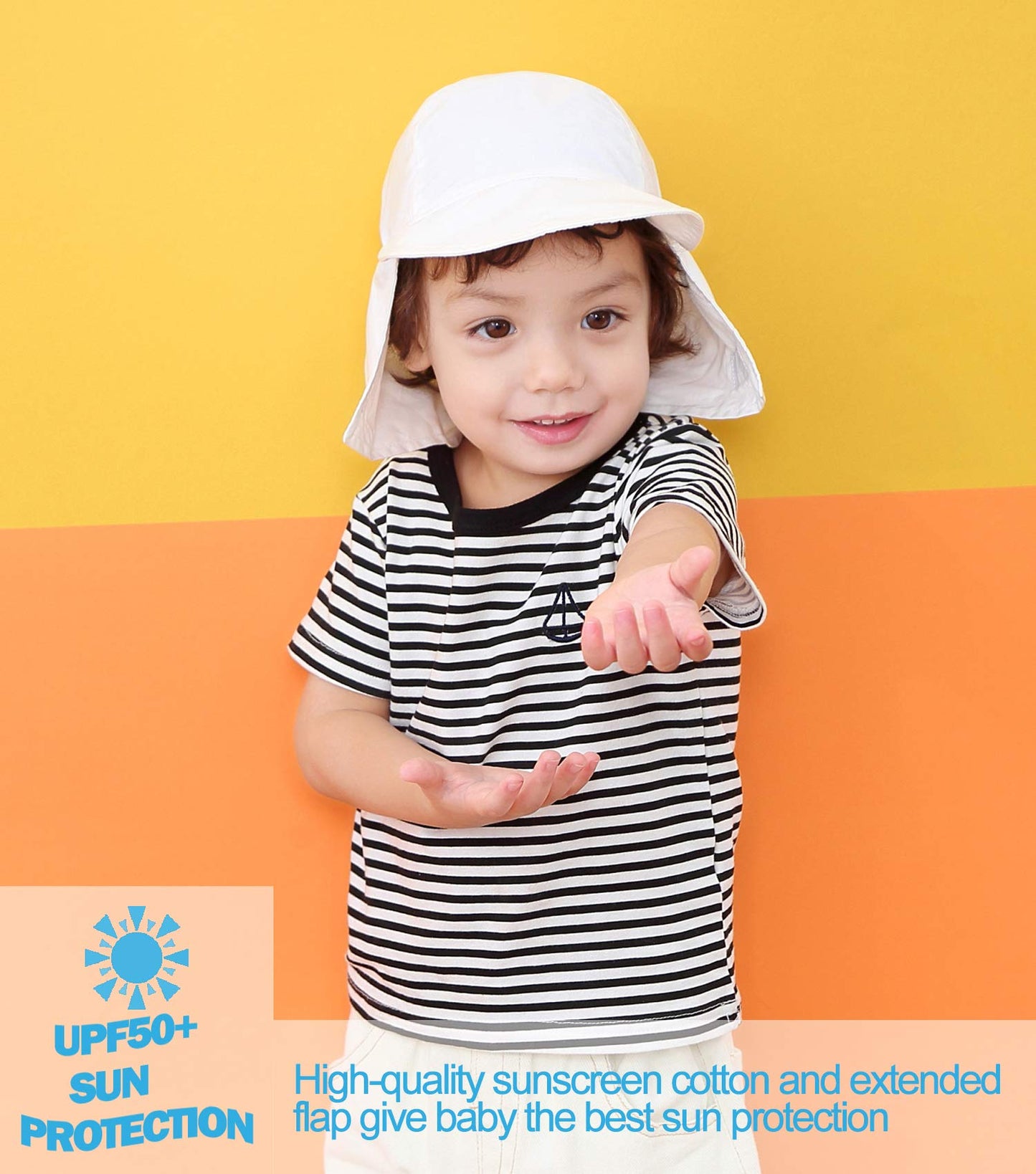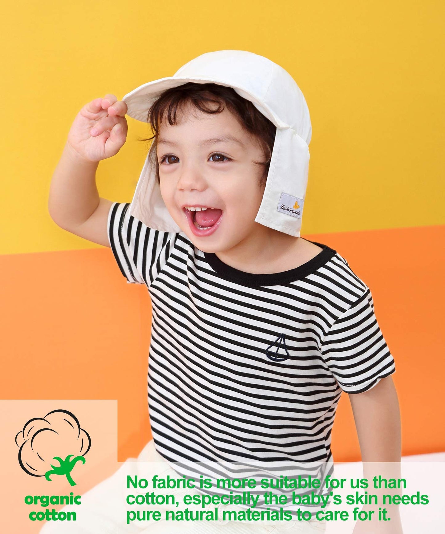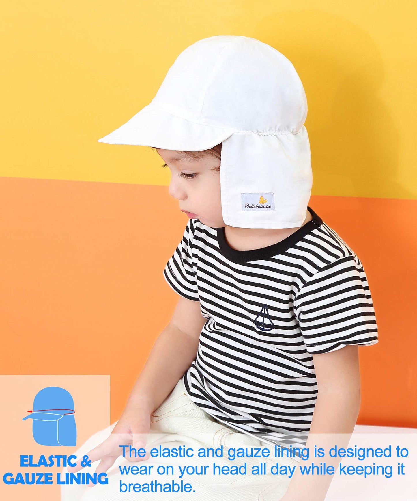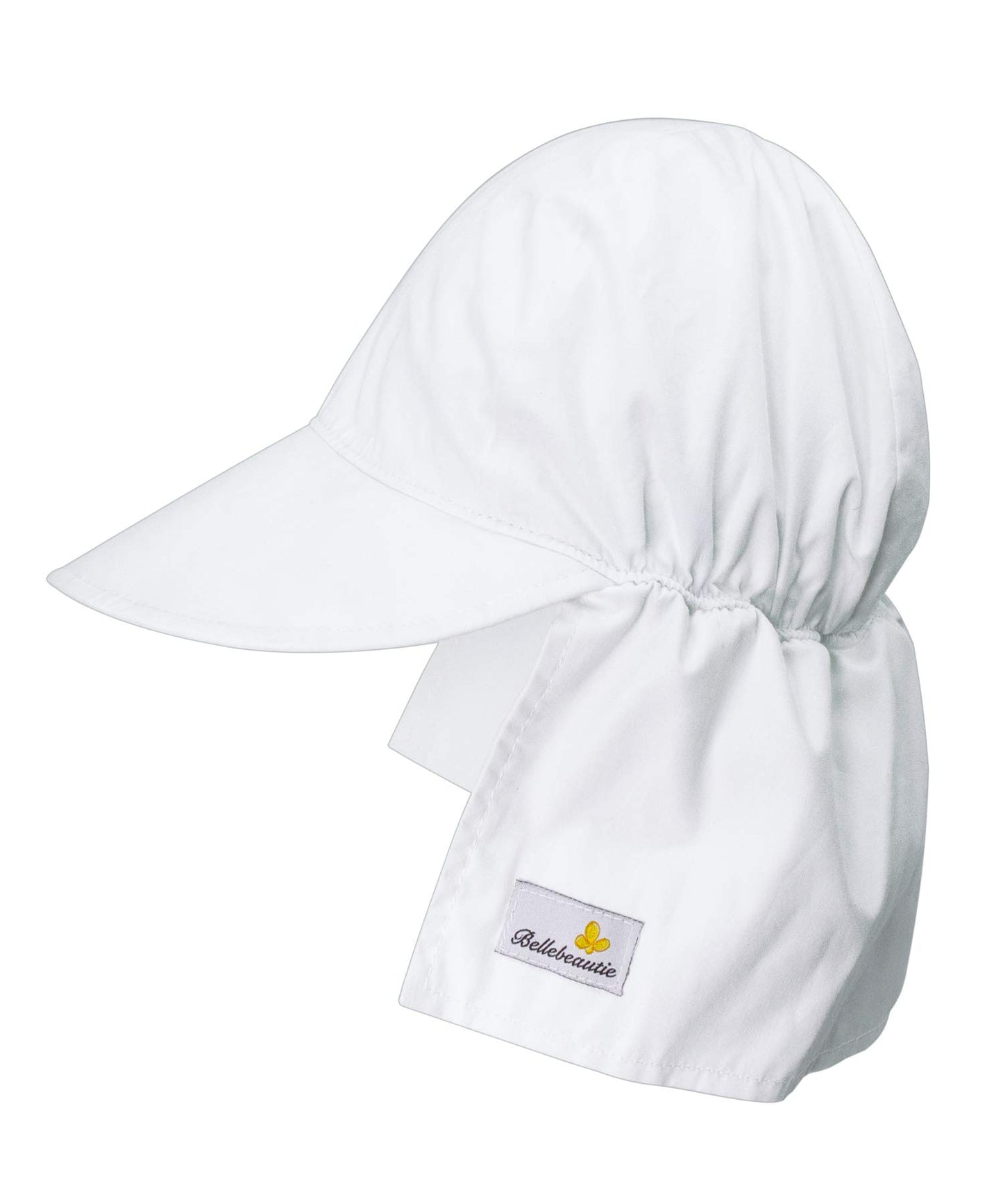 BELLEBEAUTIE Baby Neck Flap Sun Hat Chemical Free Breathable Cotton UPF 50+ Sun Protection Kids Hat White