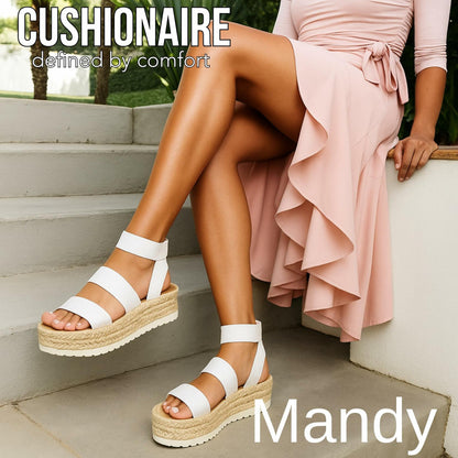 CUSHIONAIRE Mandy Wedge Sandals for Women 2025 – Strappy Platform Sandals with Arch Support, Cute Summer Espadrille-Style Platform Dressy Slip-On, WHITE 8.5