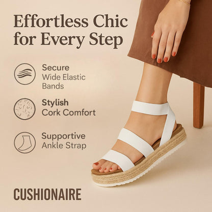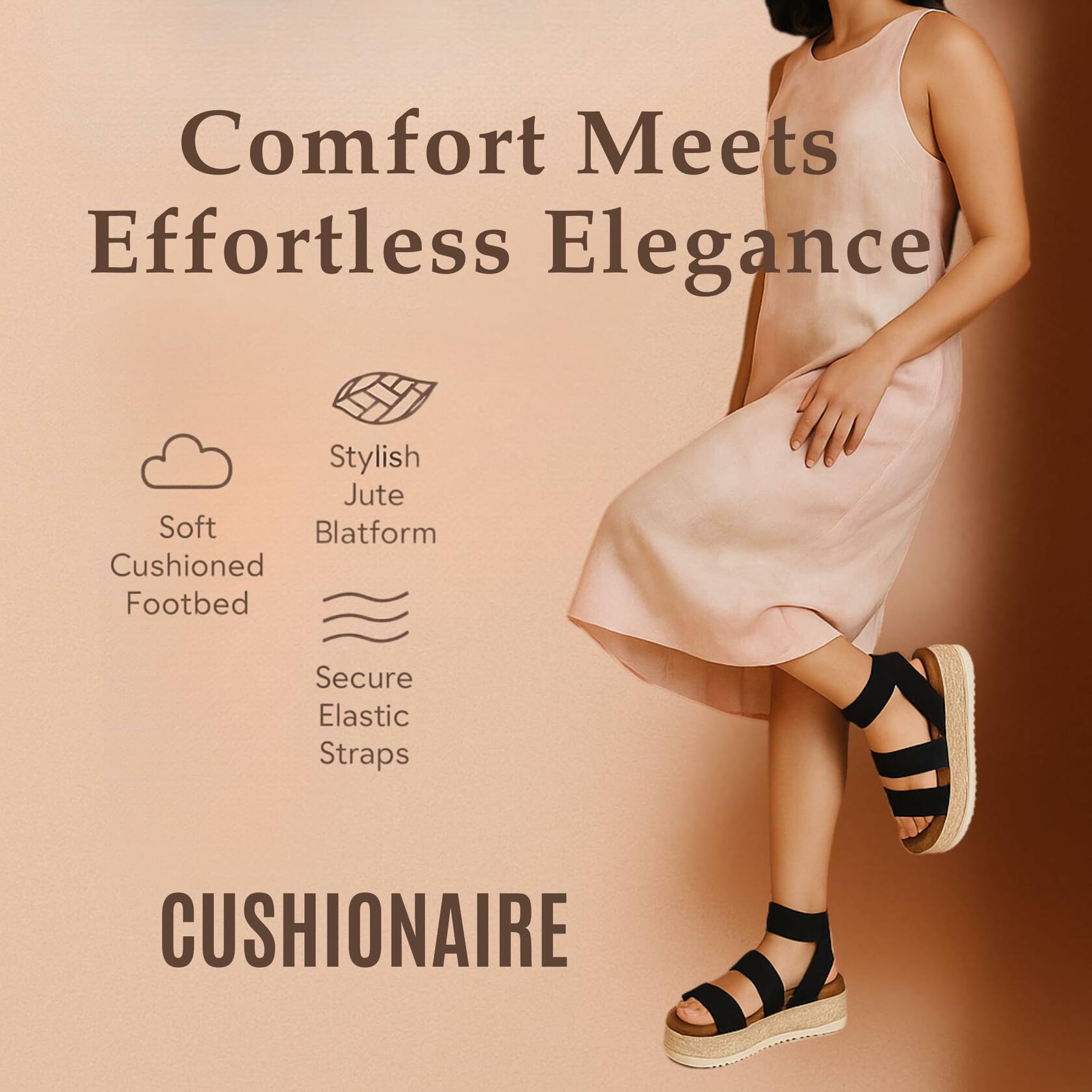 Step into stylish comfort with the CUSHIONAIRE Mandy Platform Espadrille, the go-to choice for womens summer sandals platform in 2025. These strappy sandals for women platform feature a modern slip-on design with stretch gore straps for a flexible, secure fit that molds comfortably to your foot. Whether youre looking for cute platform sandals, black espadrille sandals, or breezy white espadrilles, the Mandy checks all the boxes. A soft, contoured footbed with arch support makes walking feel effortless a must-have for all-day comfort. The lightweight sole combines the casual vibe of espadrille platform sandals with the stability of a traction outsole, making them ideal for any summer adventure. The 2-inch platform wedge heel offers just the right amount of lift without sacrificing ease, making these perfect for beach days, outdoor events, and daily errands. With color options like Black, White, Nude, and Raffia, this versatile platform wedge pairs effortlessly with sundresses, shorts, or casual denim. Whether youre shopping for platform espadrille sandals for women or searching for womens platform sandals with the perfect blend of height, comfort, and style, this elevated yet affordable choice delivers the look you're after. Score high in both comfort and style this season. If you love platform nude sandals, black strappy platform sandals, or womens white espadrille sandals, CUSHIONAIRE Mandy is a trending essential. Popular among those seeking summer wedges for women and fall sandals for women, this style is a standout for 2025. Add these platform sandals to your closet and experience the best of both fashion-forward style and foot-friendly design.