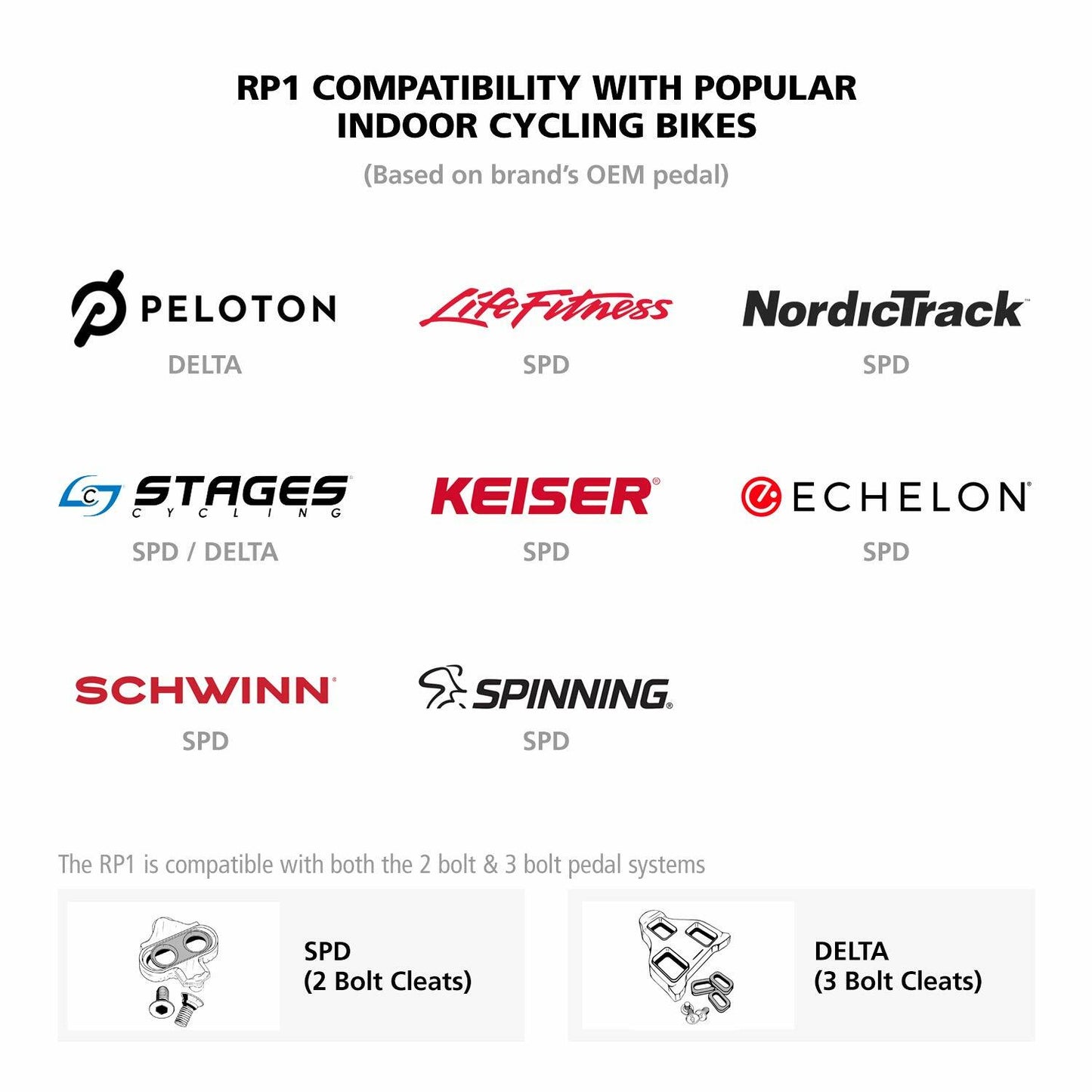 - The SH-RP100 (RP1) is a Versatile 5-Hole Outsole: Compatible with both SPD / 2-hole and SPD-SL 3-hole cleats and clip-in pedals